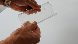 Гибридный чехол состоит из двух частей и трех видов пластика - жесткой задней части из пластмассы толщиной 1 мм, тонкой прозрачной пластиковой пленки спереди толщиной всего 0.1 мм и мягкого силикона по краям толщиной 0.7 мм. Чехол полностью прозрачный, не скрывает модель и цвет телефона. Передняя часть не мешает прикосновениям для управления смартфоном, а по краям имеет более толстый материал для амортизации от ударов при возможных падениях. Даже при случайном жестком падении на бетонный пол или асфальт дорогостоящие корпус и экран телефона останутся целыми, повреждения получит, лишь, сам чехол.
